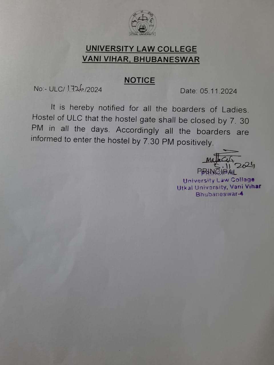 ladies hostel gate close notice